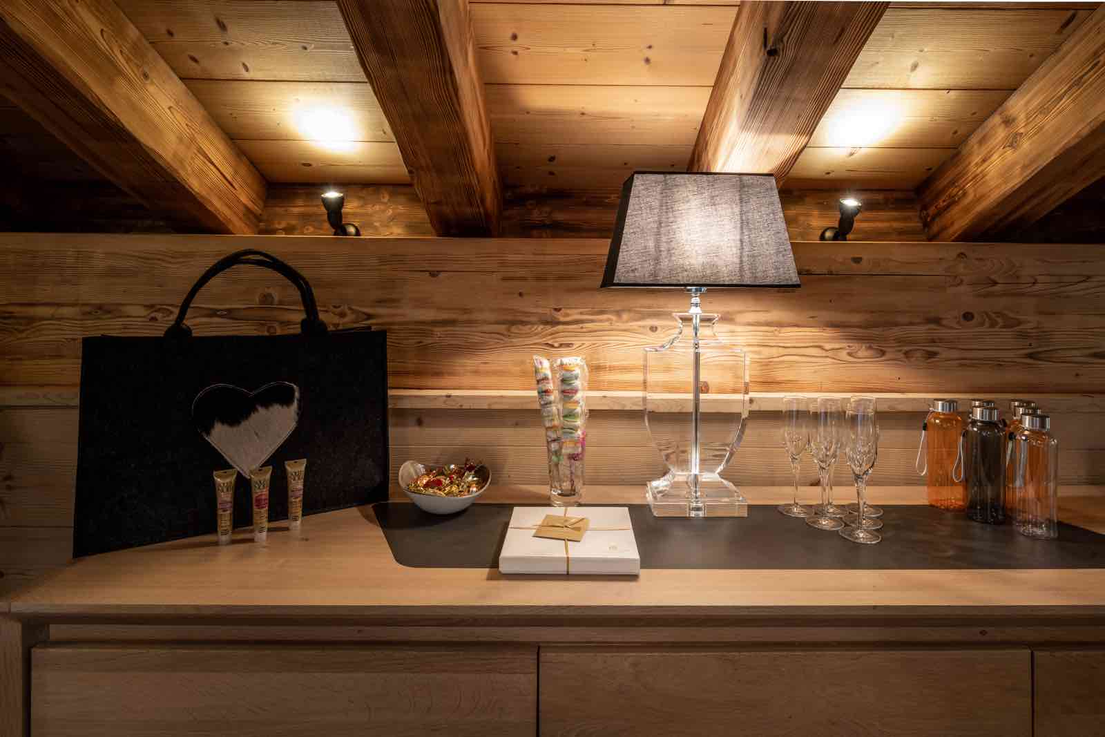 Ski room (shared with next chalet) with drinks and cereal bars, ski boot dryer; ski lockers, storage for equipment and WC