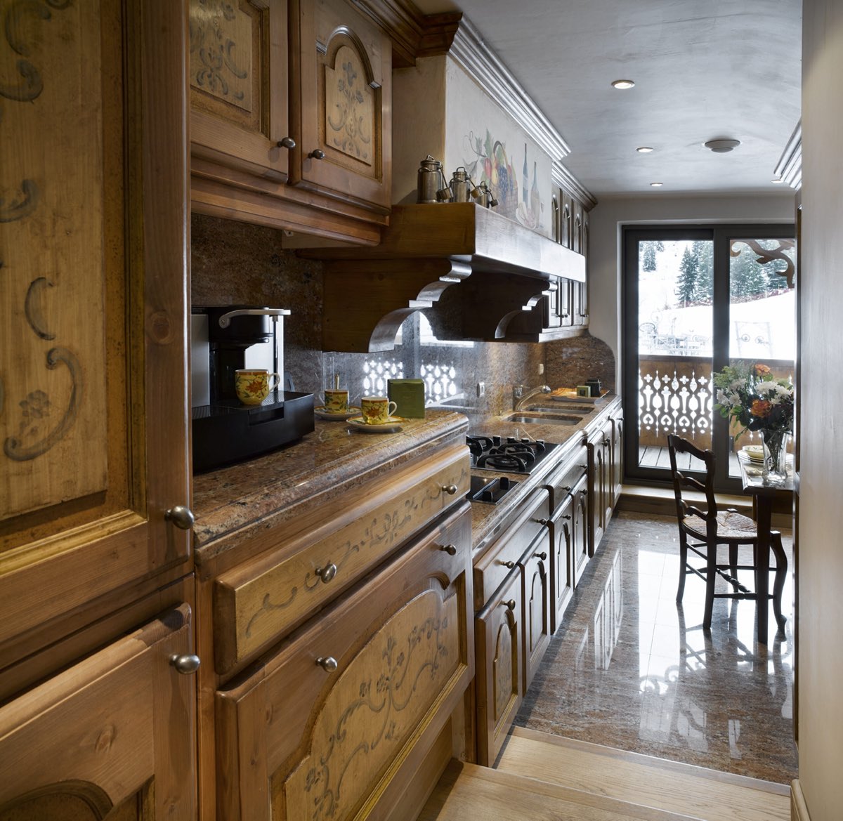 This beautiful apartment with refined furniture and sophisticated decoration, has panoramic sceneries over the center of Courchevel 1850 and direct view to the ski slopes.