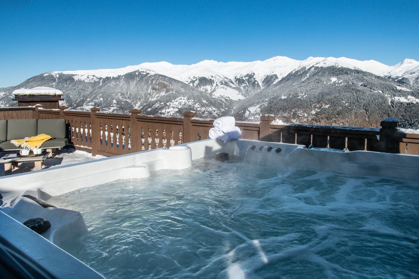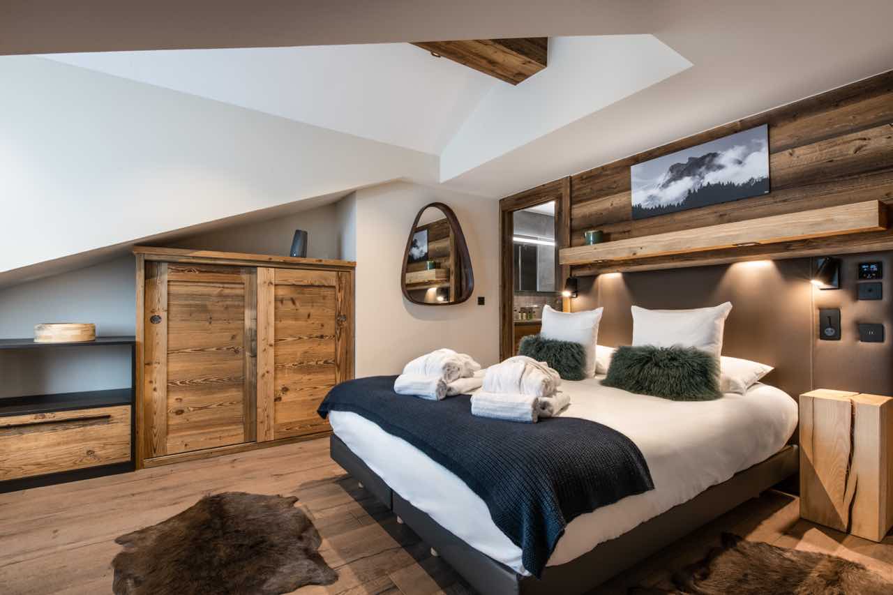 -Master bedroom with an adjacent bathroom and private terrace with Jacuzzi and solarium, with a view of the Dent du Villard